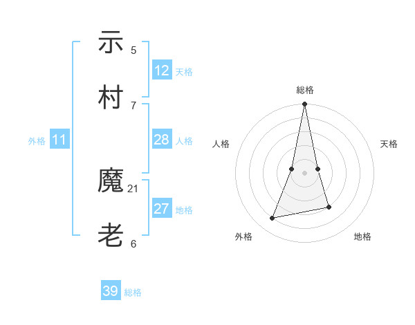 示村 魔老さんの総格は39画の5点!