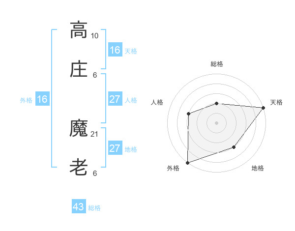 高庄 魔老さんの天格は16画の5点!