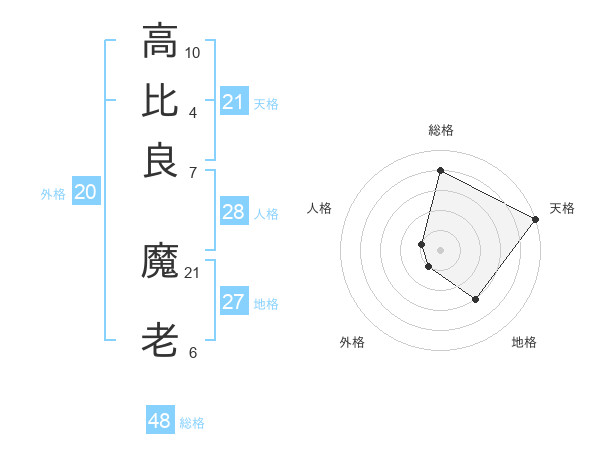 高比良 魔老さんを姓名の画数から五運を鑑定