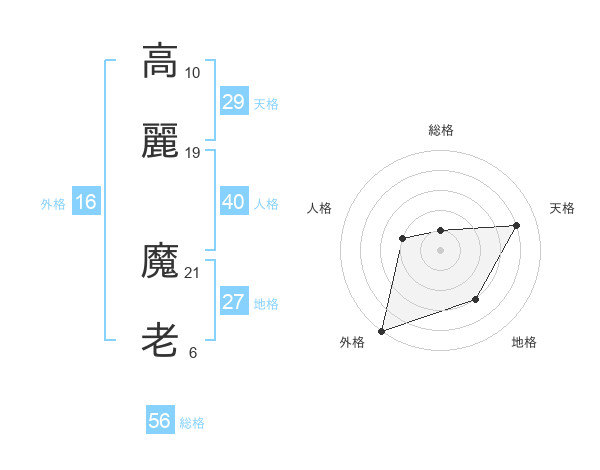 高麗 魔老さんの総格は56画の1点!
