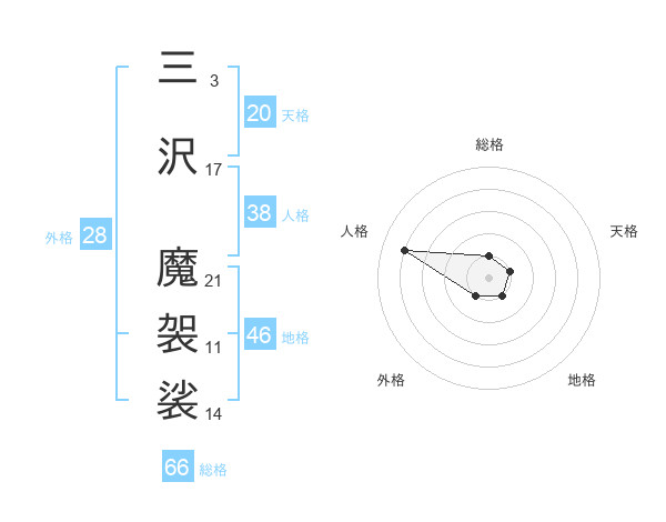 三沢 魔袈裟さんを姓名の画数から五運を鑑定