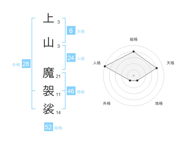 上山 魔袈裟さんを姓名の画数から五運を鑑定