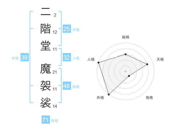 二階堂 魔袈裟さんを姓名の画数から五運を鑑定