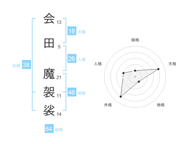 会田 魔袈裟さんを姓名の画数から五運を鑑定
