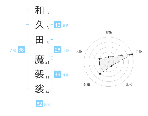 和久田 魔袈裟さんを姓名の画数から五運を鑑定