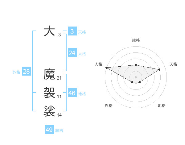 大 魔袈裟さんの地格は46画の1点!