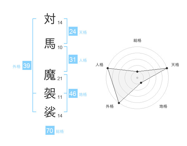 対馬 魔袈裟さんを姓名の画数から五運を鑑定
