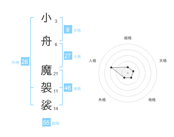 小舟 魔袈裟さんの総格は55画の1点!