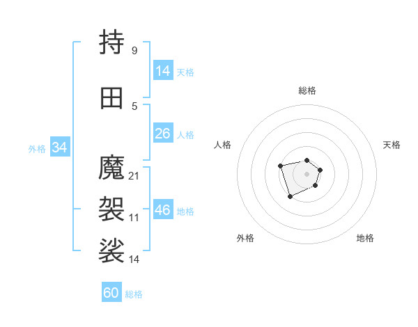 持田 魔袈裟さんを姓名の画数から五運を鑑定