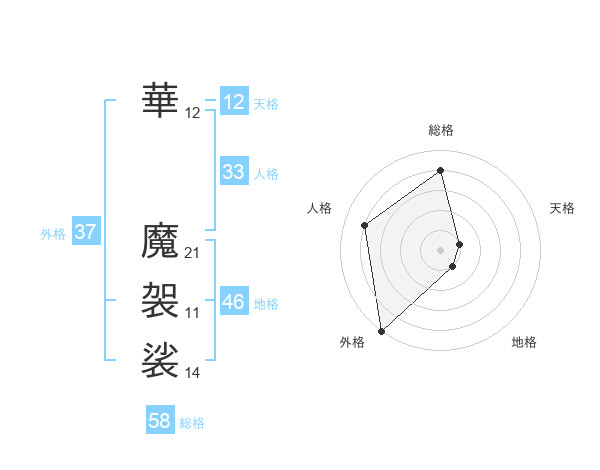 華 魔袈裟さんを姓名の画数から五運を鑑定