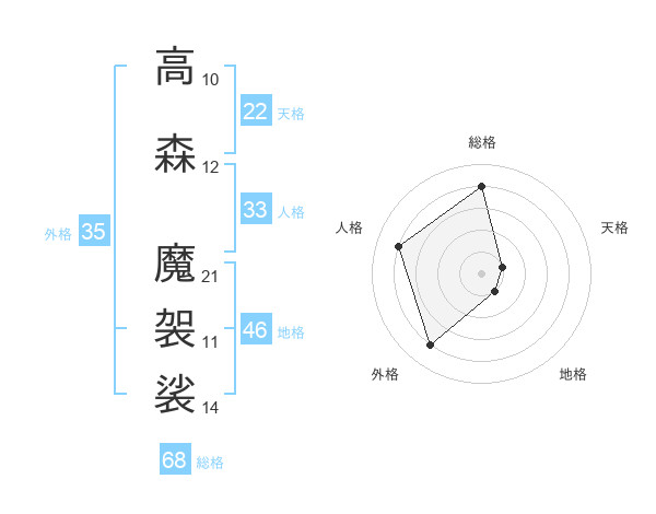 高森 魔袈裟さんを姓名の画数から五運を鑑定