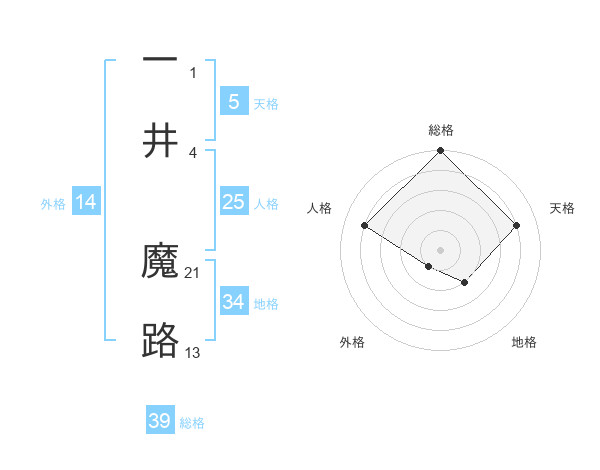 一井 魔路さんの総格は39画の5点!