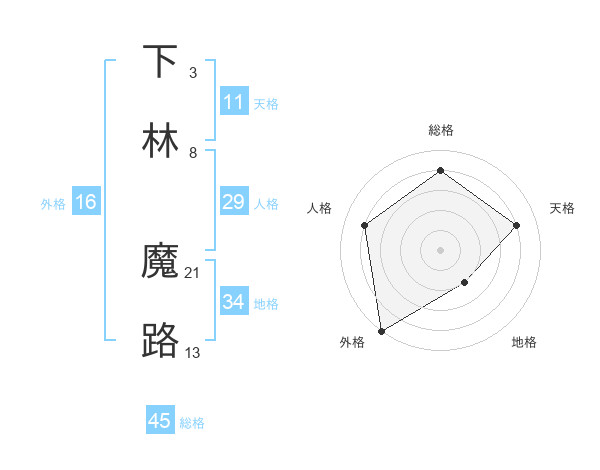 下林 魔路さんの総格は45画の4点!