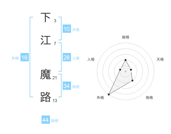 下江 魔路さんの総格は44画の2点!