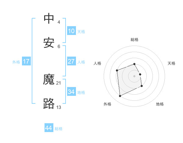 中安 魔路さんの総格は44画の2点!