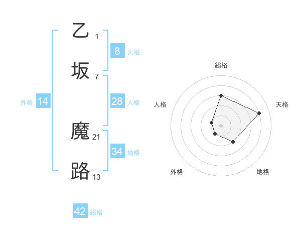 乙坂 魔路さんを姓名の画数から五運を鑑定