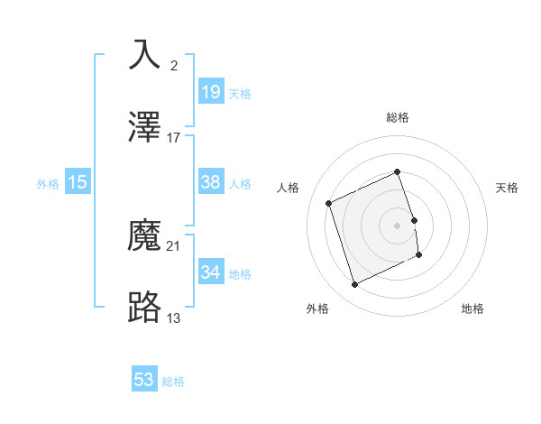 入澤 魔路さんを姓名の画数から五運を鑑定