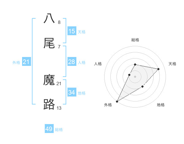 八尾 魔路さんを姓名の画数から五運を鑑定