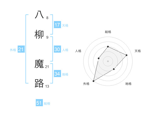 八柳 魔路さんの総格は51画の3点!