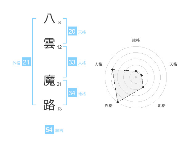 八雲 魔路さんの天格は20画の1点!
