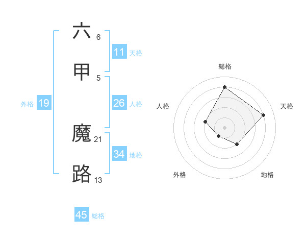 六甲 魔路さんの総格は45画の4点!