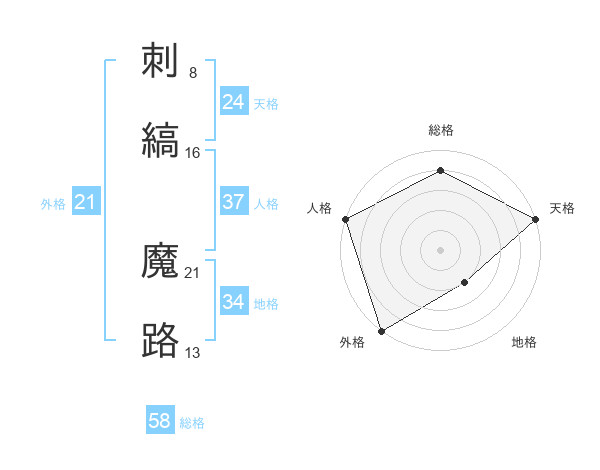 刺縞 魔路さんの天格は24画の5点!