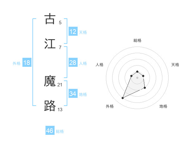 古江 魔路さんの総格は46画の1点!