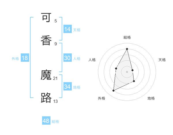 可香 魔路さんの総格は48画の4点!