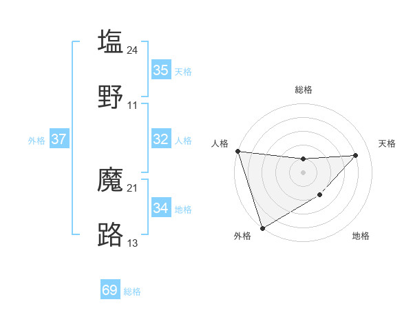 塩野 魔路さんを姓名の画数から五運を鑑定
