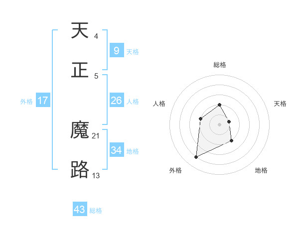 天正 魔路さんの総格は43画の2点!