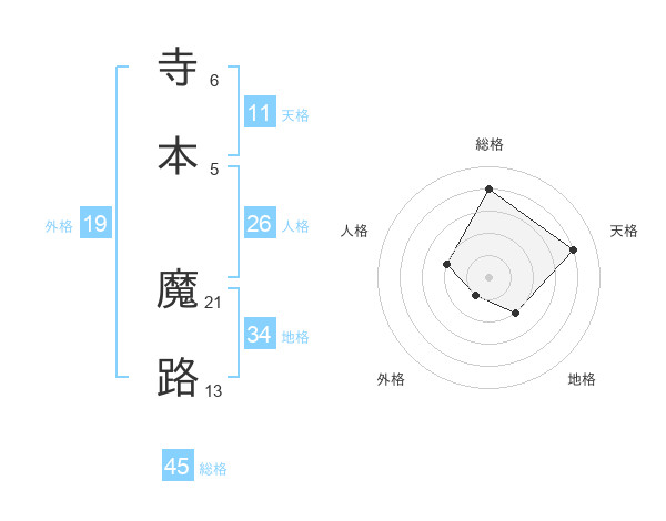 寺本 魔路さんの総格は45画の4点!