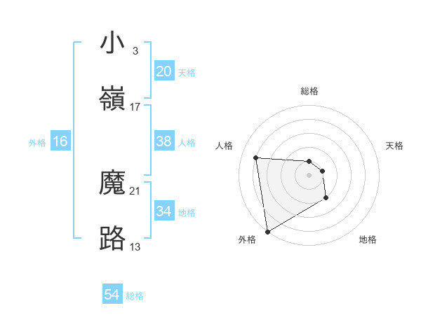 小嶺 魔路さんを姓名の画数から五運を鑑定