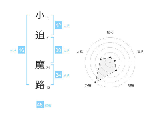 小迫 魔路さんの総格は46画の1点!