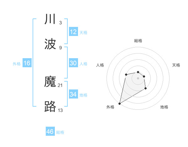 川波 魔路さんの総格は46画の1点!