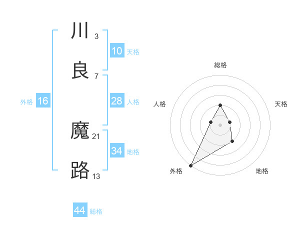 川良 魔路さんの総格は44画の2点!