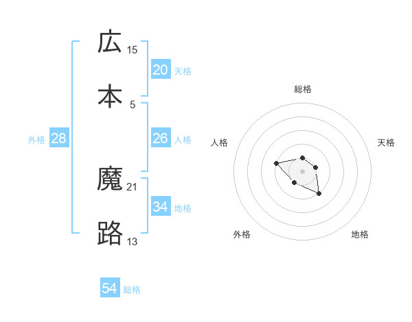 広本 魔路さんの天格は20画の1点!