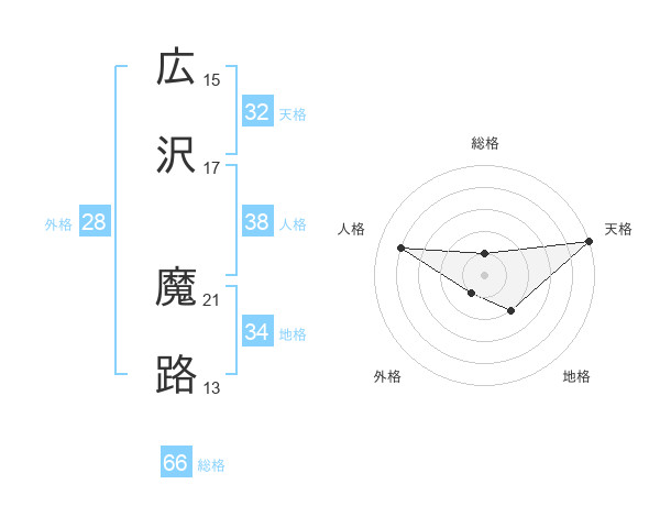 広沢 魔路さんを姓名の画数から五運を鑑定