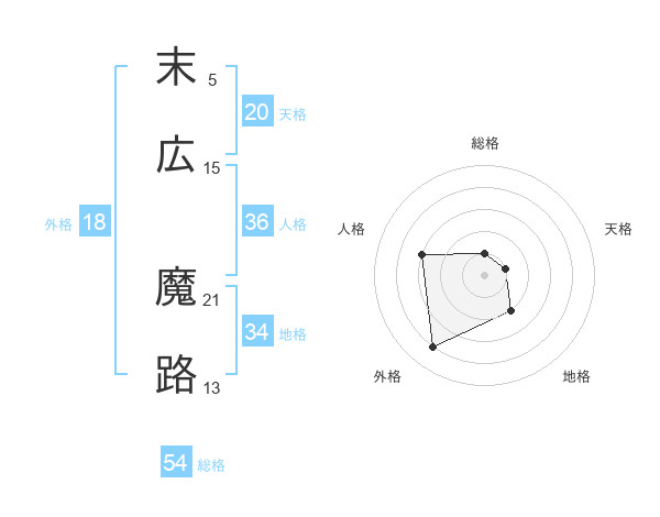 末広 魔路さんの総格は54画の1点!