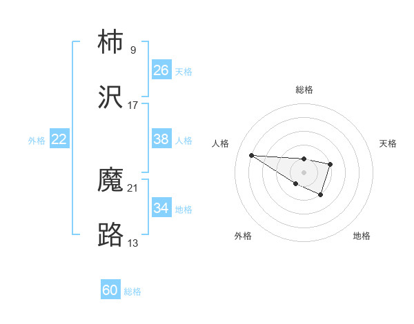 柿沢 魔路さんの総格は60画の1点!