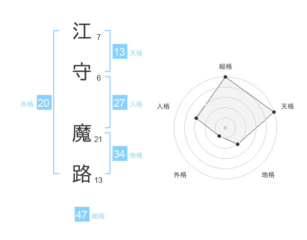 江守 魔路さんの総格は47画の5点!