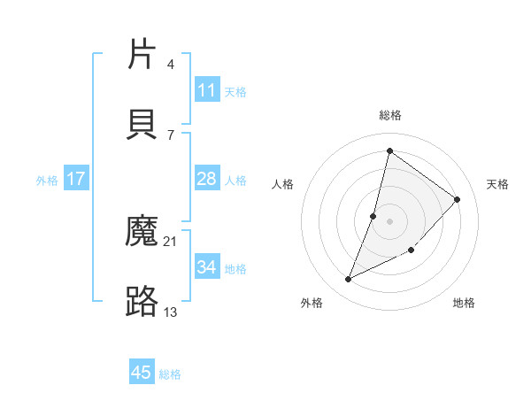 片貝 魔路さんの外格は17画の4点!