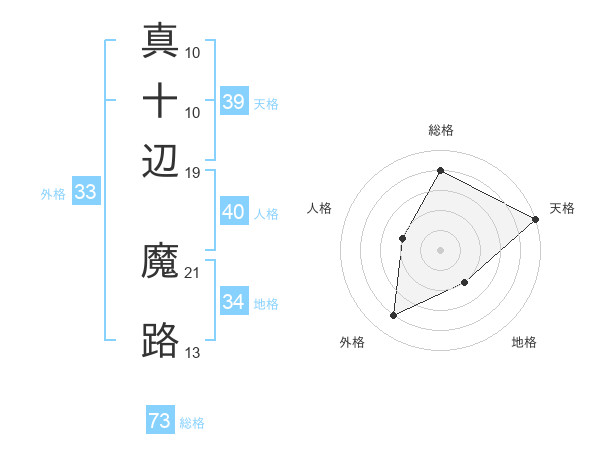 真十辺 魔路さんを姓名の画数から五運を鑑定