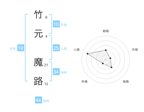 竹元 魔路さんの総格は44画の2点!