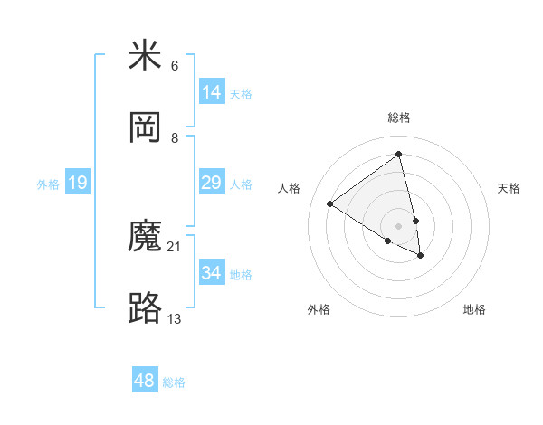 米岡 魔路さんを姓名の画数から五運を鑑定