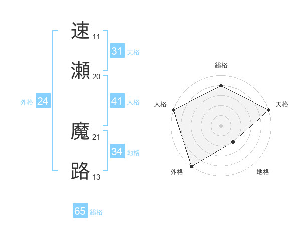 速瀬 魔路さんを姓名の画数から五運を鑑定