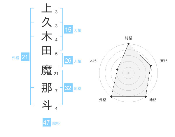 上久木田 魔那斗さんを姓名の画数から五運を鑑定