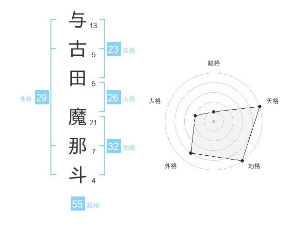 与古田 魔那斗さんの天格は23画の5点!
