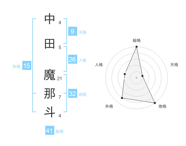 中田 魔那斗さんを姓名の画数から五運を鑑定
