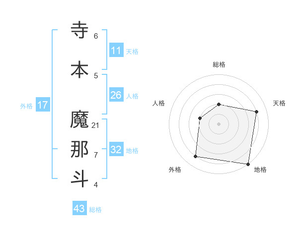 寺本 魔那斗さんの外格は17画の4点!