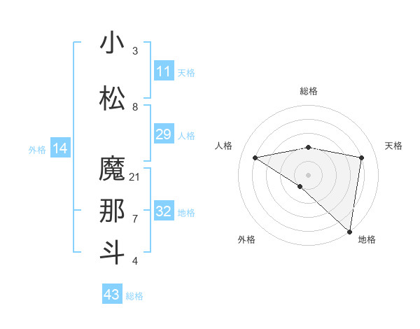 小松 魔那斗さんを姓名の画数から五運を鑑定